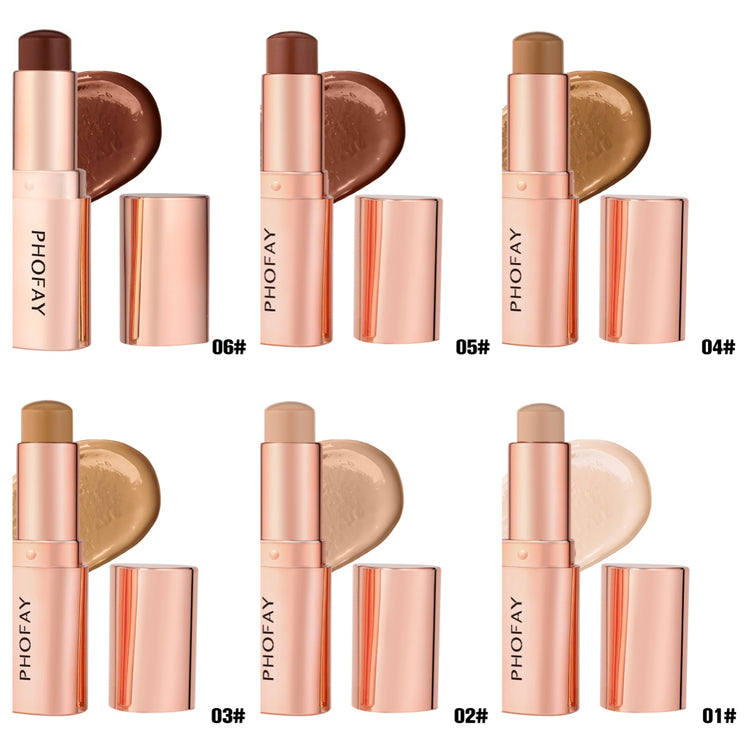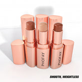 -For the first step of the face, create a soft, matte base: Swipe stick onto skin and blend with fingers or with the Contour Brush.