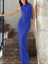 Lång klänning med en axel och band för kvinnor - Smal ärmlös kvällsfest klubbkläder